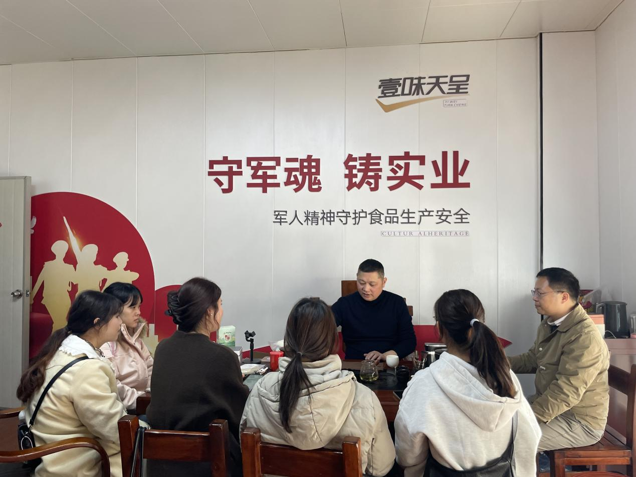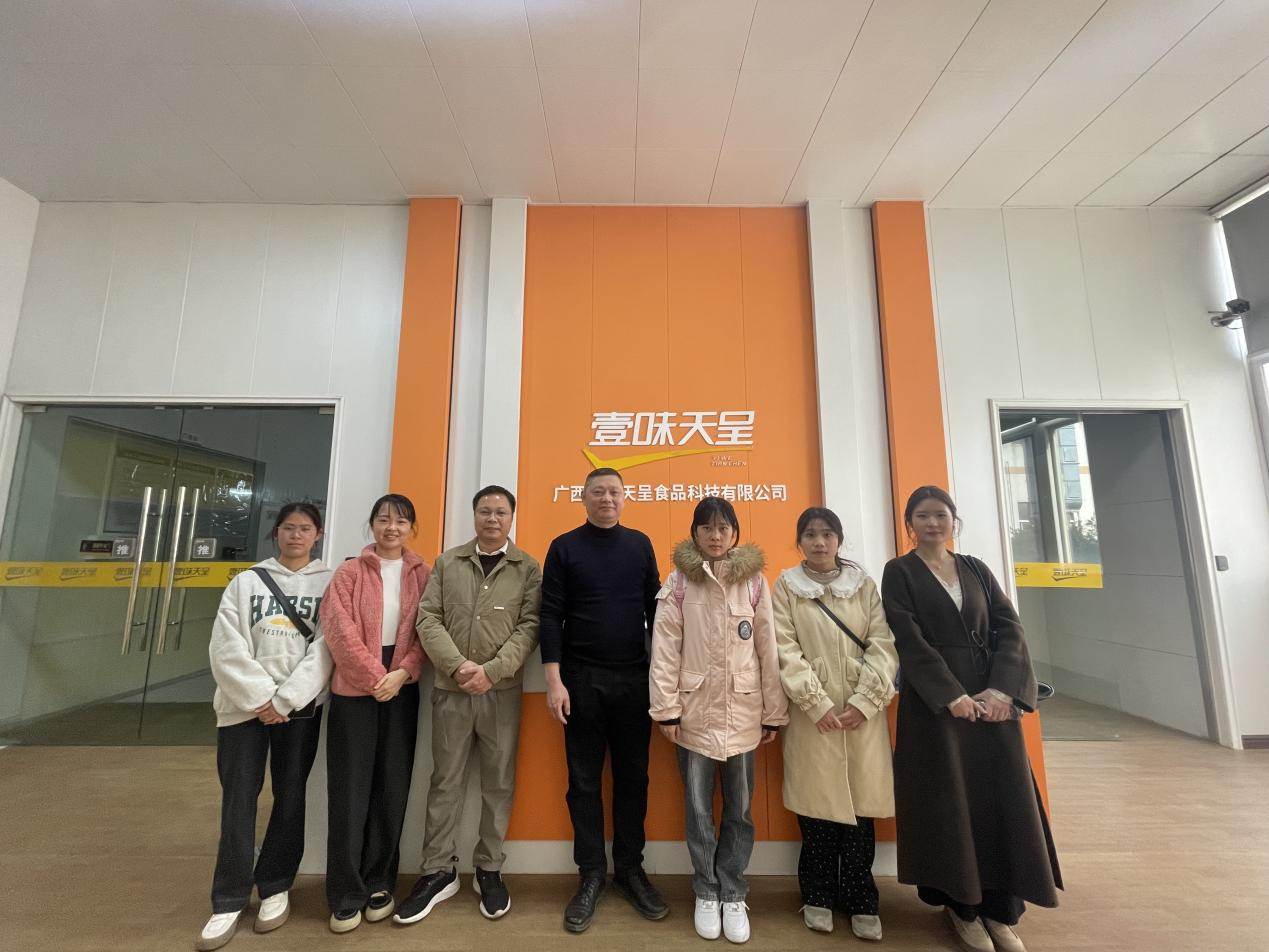 3月18日,在威尼斯官网市场营销教研室主任刘蕙荟、专任教师梁海东的带领下,5名市场营销专业学生赴广西壹味天呈食品科技有限公司开展项目交流活动。
