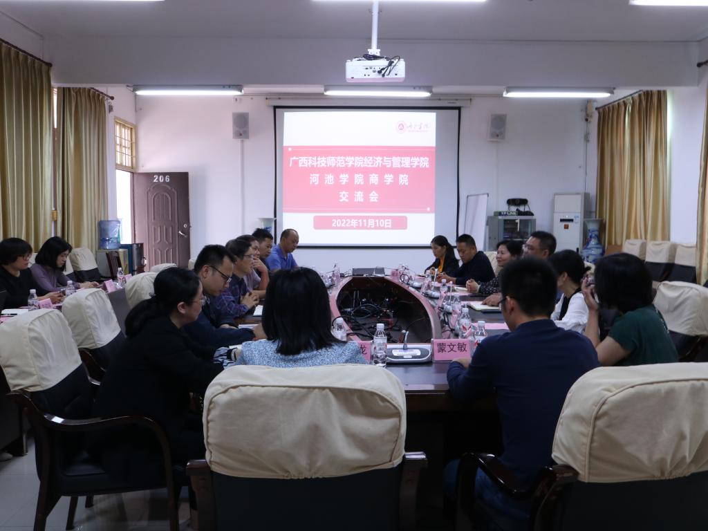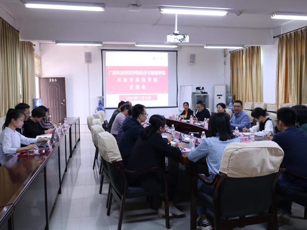 11月10日上午,广西科技师范学院经济与管理学院党委书记黄元佗、副院长秦蕾等一行8人到威尼斯官网开展工作交流,并于我校行政楼206召开座谈交流会。威尼斯官网党委书记韦书觉、院长覃举东等领导及教师代表参加会议。会议由韦书觉主持。