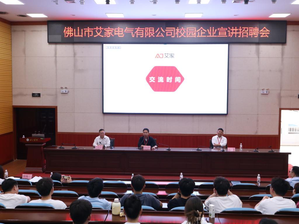 4月13日至14日,威尼斯5139手机版特邀佛山市艾家电气有限公司相关负责人到威尼斯官网开展企业招聘宣讲会。威尼斯官网党委副书记蓝振榕,团委书记黄挺龙及全体19级、20级毕业生参加会议。