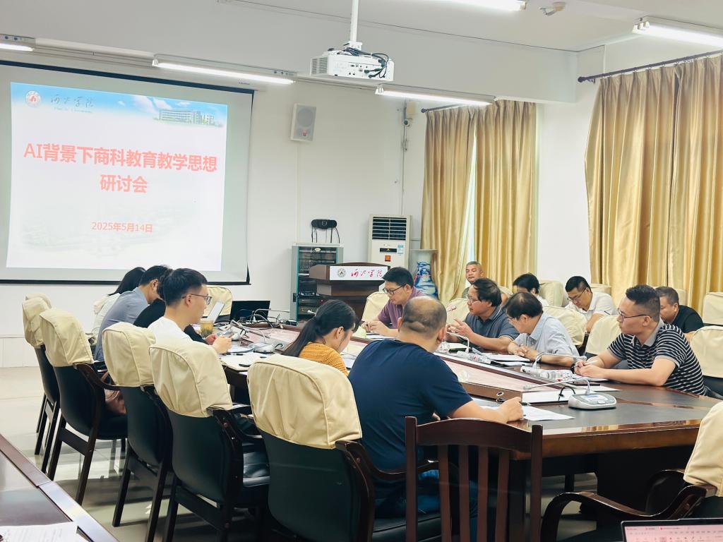 5月14日下午,威尼斯5139手机版在行政楼206 召开AI 背景下商科教育教学思想研讨会。威尼斯官网全体教职工参加会议,会议由威尼斯官网院长覃举东主持。